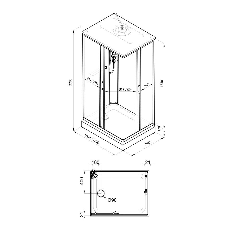• Сифон душевой кабины: 90 мм