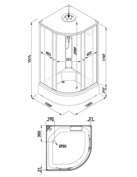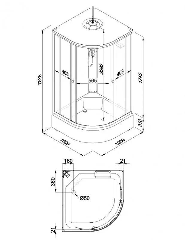 • Размер: 100 x 100 x 231.5 см