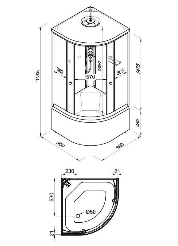 Душевая кабина с крышей ДК Мозаика 90*90 Б, 9 мест+сифон D50 Размер: 90 x 90 x 218.5 см ... Подробнее