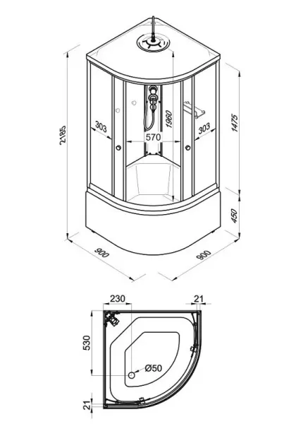 Размер: 90 x 90 x 218.5 см