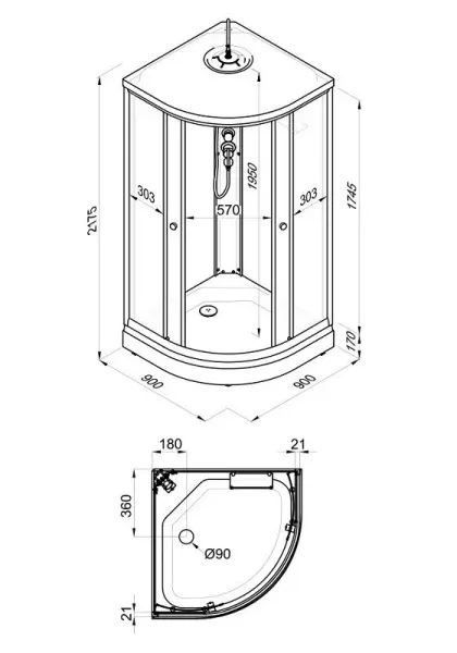 • Размер: 90 x 90 x 217.5 см