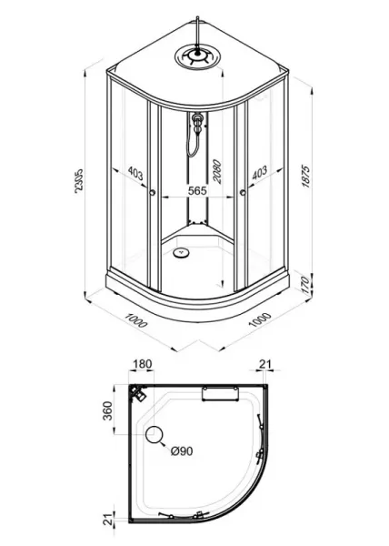 Душевая кабина с крышей ДК Ультра 100*100 А, 7 мест+сифон D90 Размер: 100 x 100 x 230.5 ... Подробнее