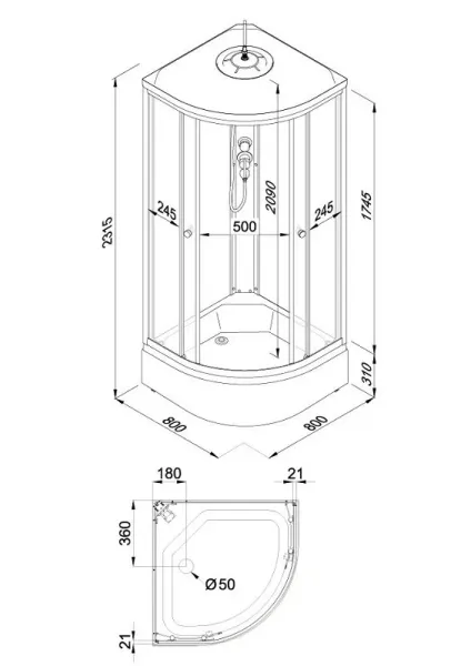 Душевая кабина с крышей ДК Вельвет 80*80 В, 7 мест+сифон D50 Размер: 80 x 80 x 231.5 см ... Подробнее