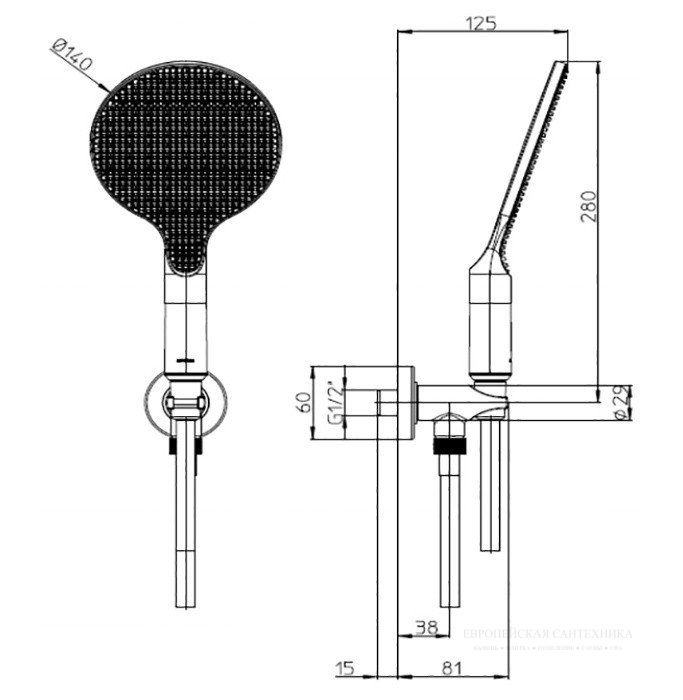 Bossini Apice душ ручной: Ø 140 мм с водорозеткой скрытого монтажа и держателем, шланг Cromolux 1500 мм 1/2 “F, цвет черный матовый.