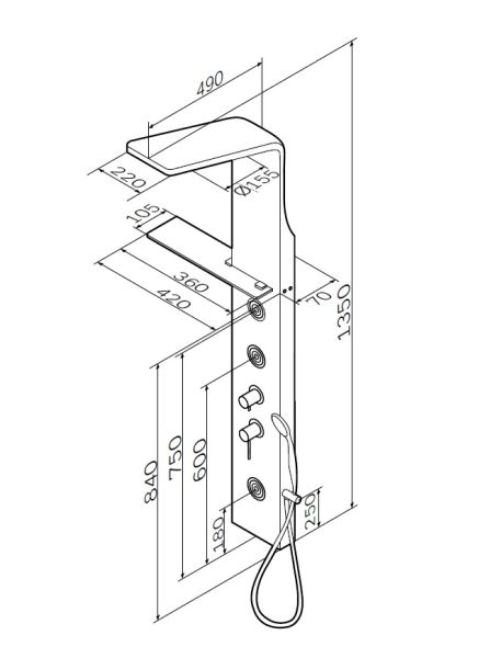 • Верхний душ 155 мм