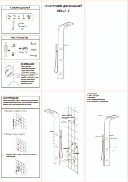 Панель BELLA B душевая, черная матовая (1500 х 220) Cerutti SPAДушевая панель оборудована: