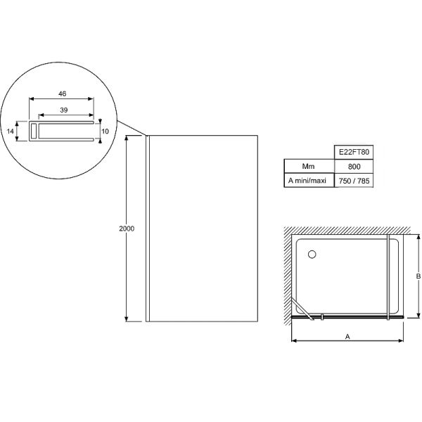 Душевая стенка Jacob Delafon Contra 80 E22FT80-BL.Преимущества:Комфорт: встроенный подъемный механизм для сокращения трения двери с полом, латунные ручки внутри и снаружи.