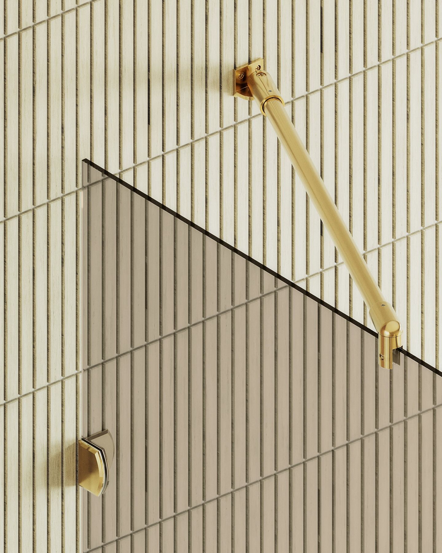 Стеклянная душевая перегородка "Коннектор стена-стекло" - это стильное и современное решение для организации пространства в вашей ванной комнате. Эта перегородка изготовлена из высококачественного закаленного стекла толщиной 8 мм, что обеспечивает прочность и долговечность конструкции. Одним из главных преимуществ этой перегородки являются коннекторы, которые надежно фиксируются и обеспечивают безопасность при принятии душа. Закаленное стекло , цвет бронза , толщина 8 мм , 1950*790-1 шт.