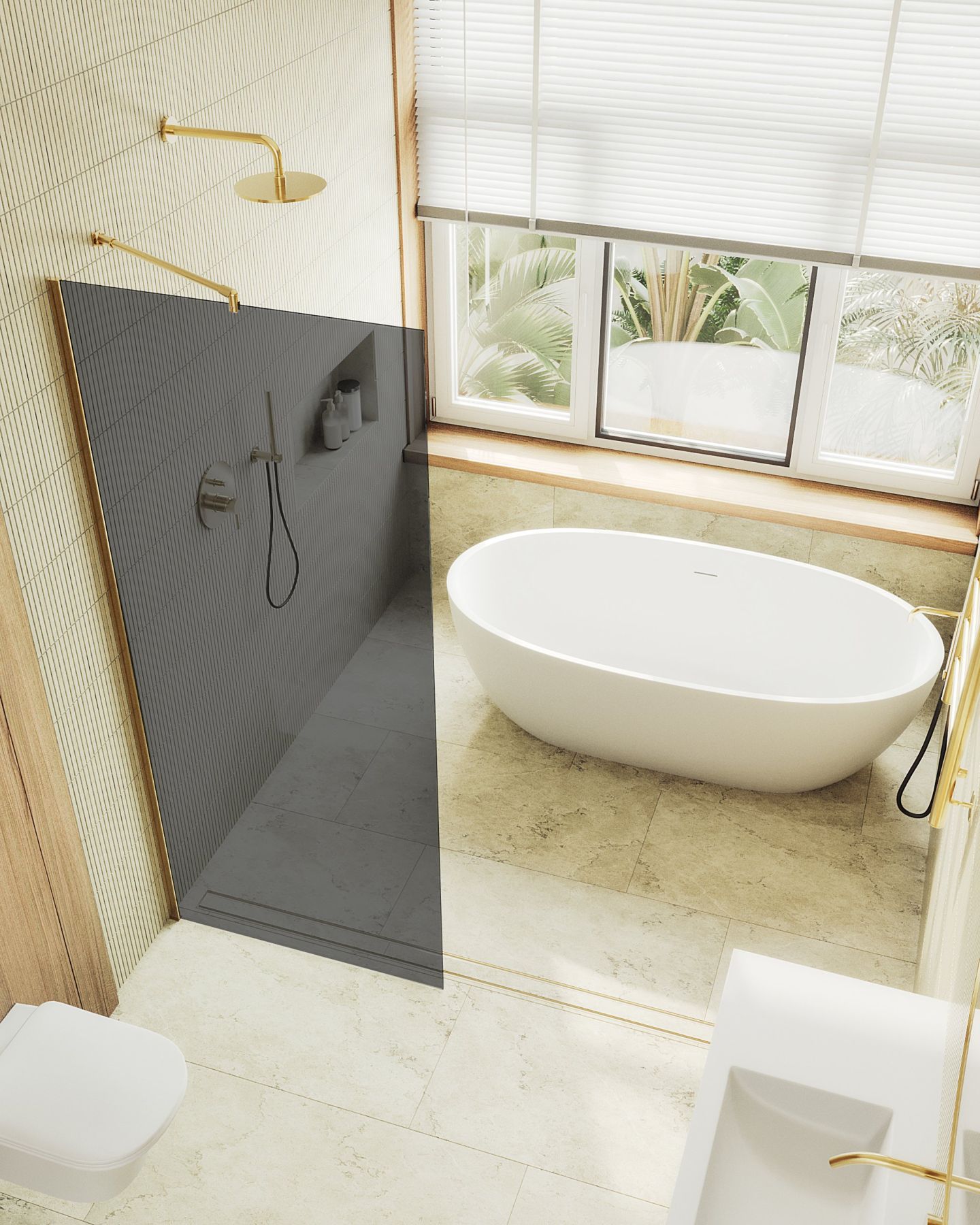 Душевая перегородка MaybahGlass MGD-698-3ш 79см золото купить