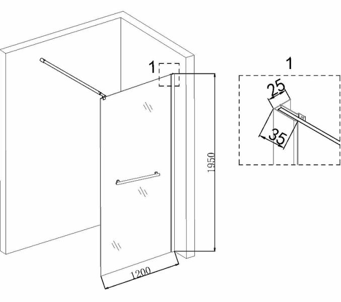 Исполнение полотна перегородки: прозрачное закаленное стекло, толщиной 6 мм.