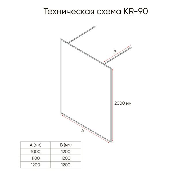 Душевая перегородка Veconi Korato KR-90BС, 1100x2000, черный матовый, хамелеон