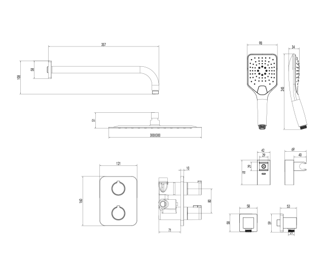 • Верхняя поворотная душевая лейка «Тропический дождь» 300x300 мм