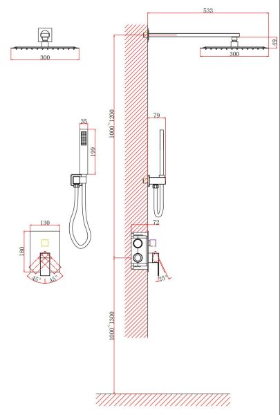 Душевая система DQ Bayern.Liszt DA1515705A04 чёрный