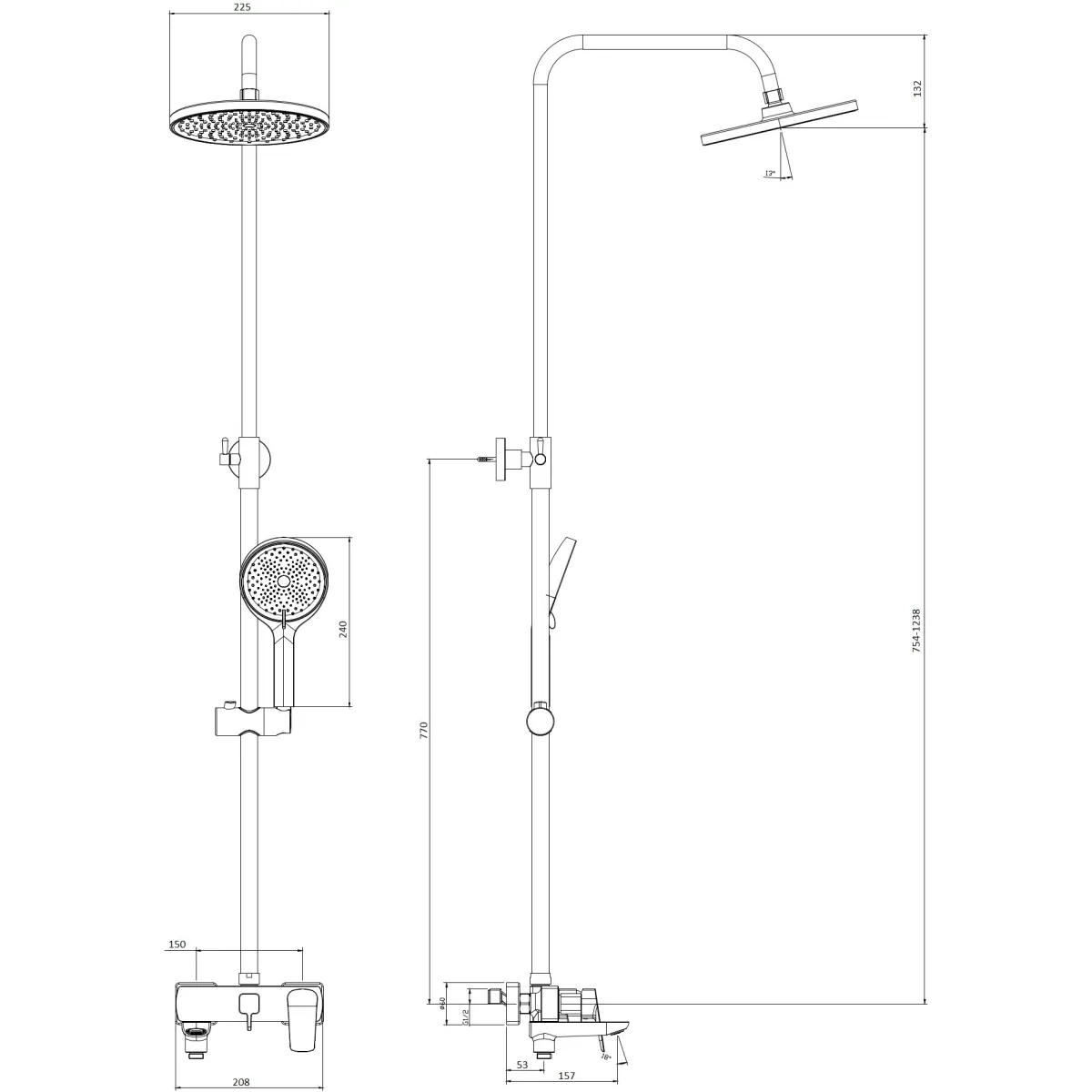 Душевая система DQ Hamburg DA1743701 225 мм, со смесителем, хром купить