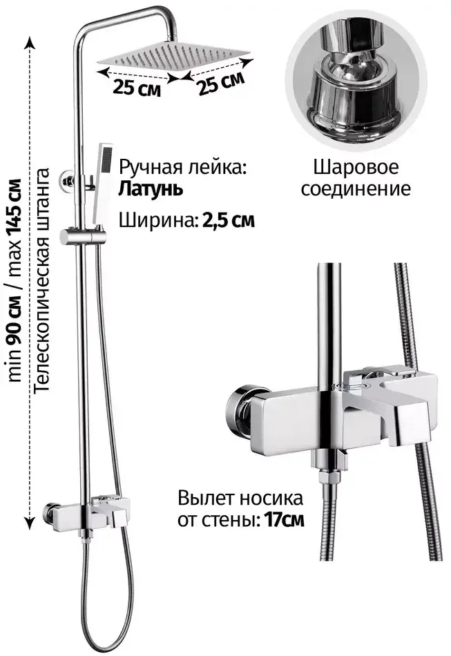 • Размер ручного душа, см: