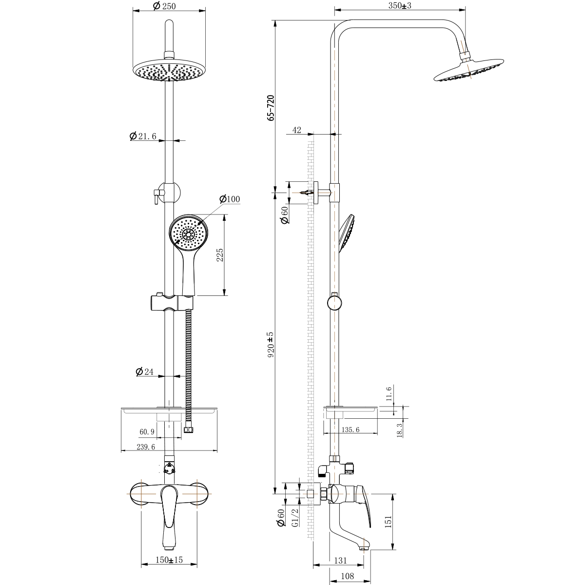 Размер верхнего душа, см:25