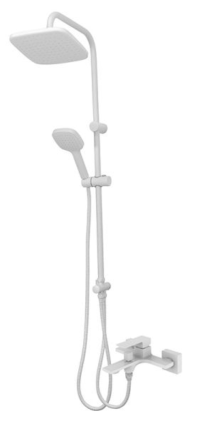 Душевая система Orange M04-944w: однозахватный смеситель для ванны с изливом, верхний душ 230х230 мм с регулировкой угла наклона, ручной душ 120 мм - 1 режим струи, регулируемый по высоте и наклону держатель ручного душа, форсунки верхнего и ручного душа с функцией легкой очистки от известкового налета, душевой шланг 1,5 м с защитой от перекручивания, штанга с возможностью установки в старые отверстия, керамический дивертор. Цвет глянцевый белый.