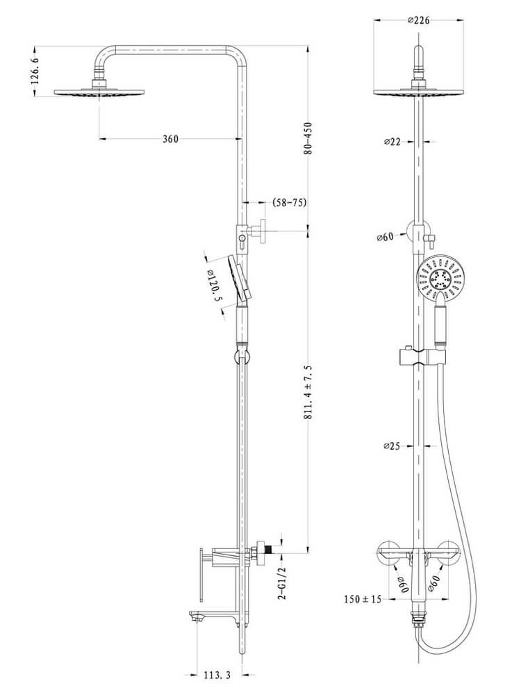 Регулируемый по высоте ручной душ