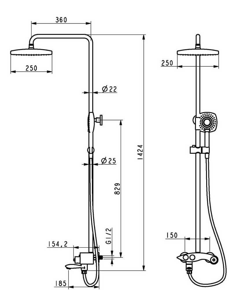 Размер верхнего душа, см:25
