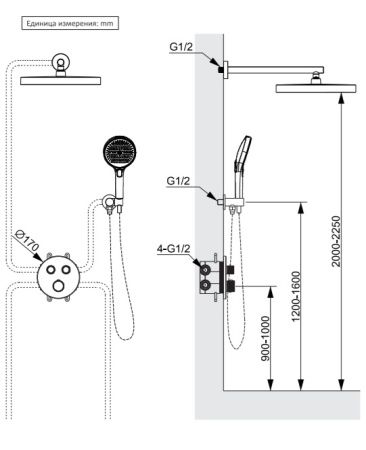 Душевая система с термостатом AltroBagno Bilancia 040413 GrMt оружейная сталь