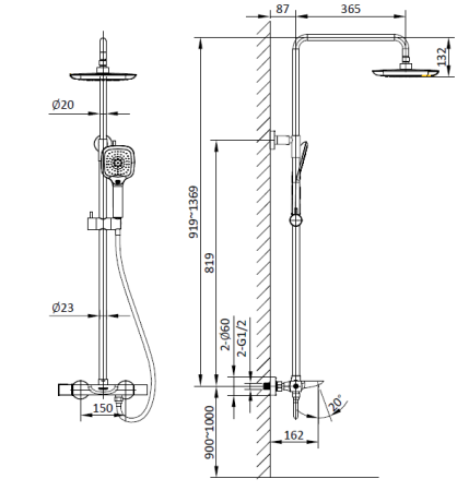 • Размер ручного душа, см: