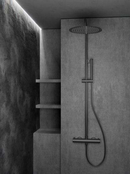 Душевая система с термостатом Knotlor SS-24/GM, вороненая сталь