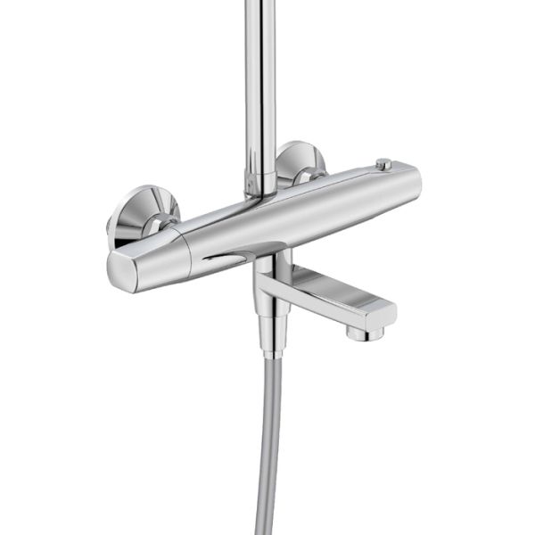 Смеситель для ванны Torr с термостатом и верхним душем – универсальный дизайн при современном функционале, оптимальный для городской квартиры и загородного дома. Термостат позволяет сэкономить время на настройке нужной температуры воды при каждом включении, при этом полностью защищает от ожогов, связанных с перепадами давления и температуры воды в сети. Две лейки большого диаметра – верхняя O229 мм и ручная O110 мм – создают объемный и приятный для тела поток воды. Смеситель привнесет максимум комфорта в привычные душевые процедуры. В комплекте гибкий душевой шланг с защитой от перекручивания и крепеж.