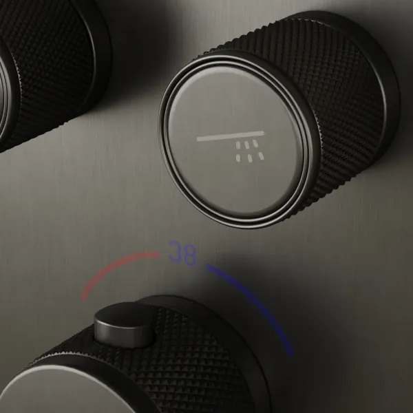Душевой комплект SANCOS Space встраиваемый, c термостатическим смесителем, верхним, ручным душем и шлангом в комплекте, цвет вороненая сталь, арт. SC3006GMG