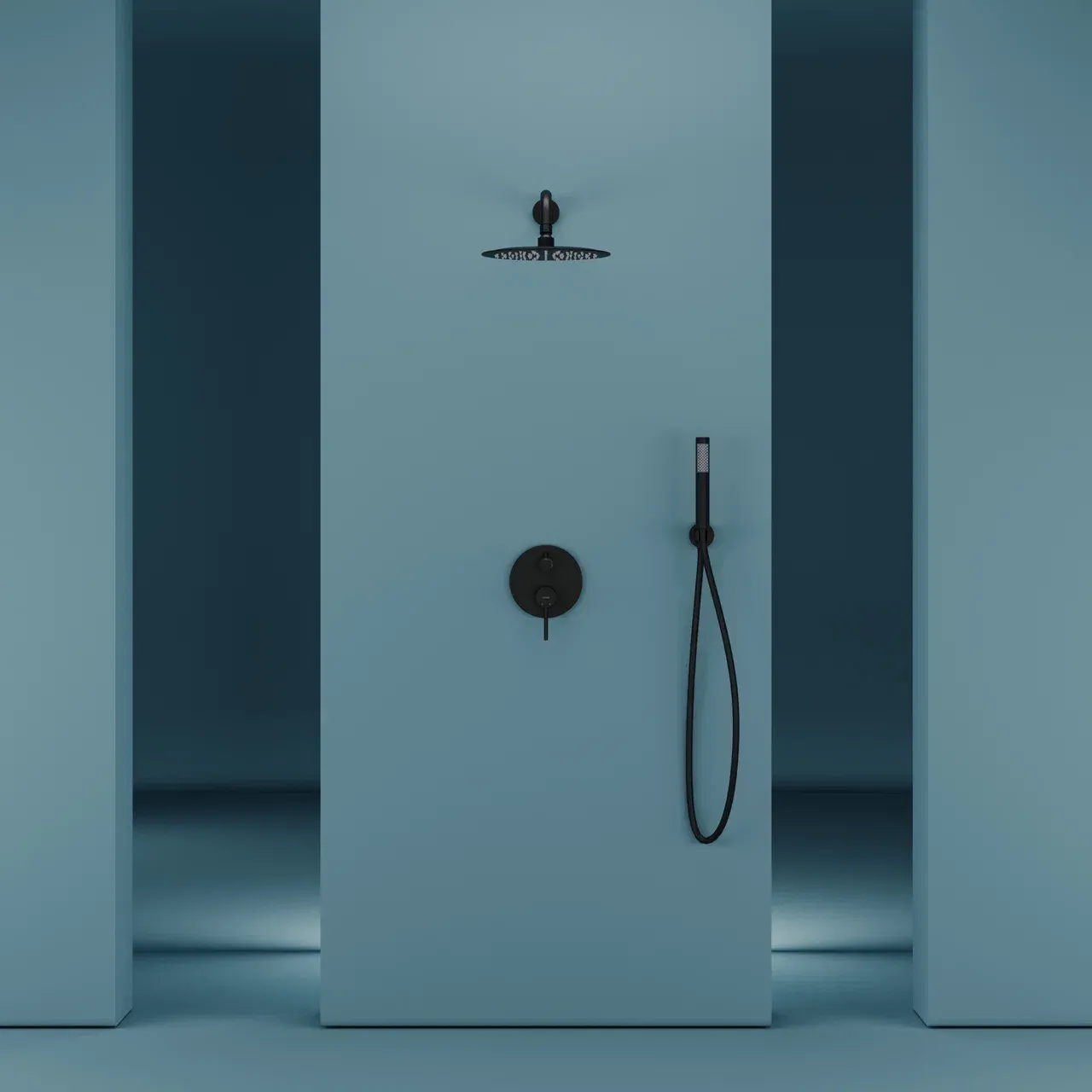 Душевой комплект SANCOS Select встраиваемый для душа, с внутренней частью, верхним, ручным душем и шлангом в комплекте, цвет черный матовый, арт. SC3003MB