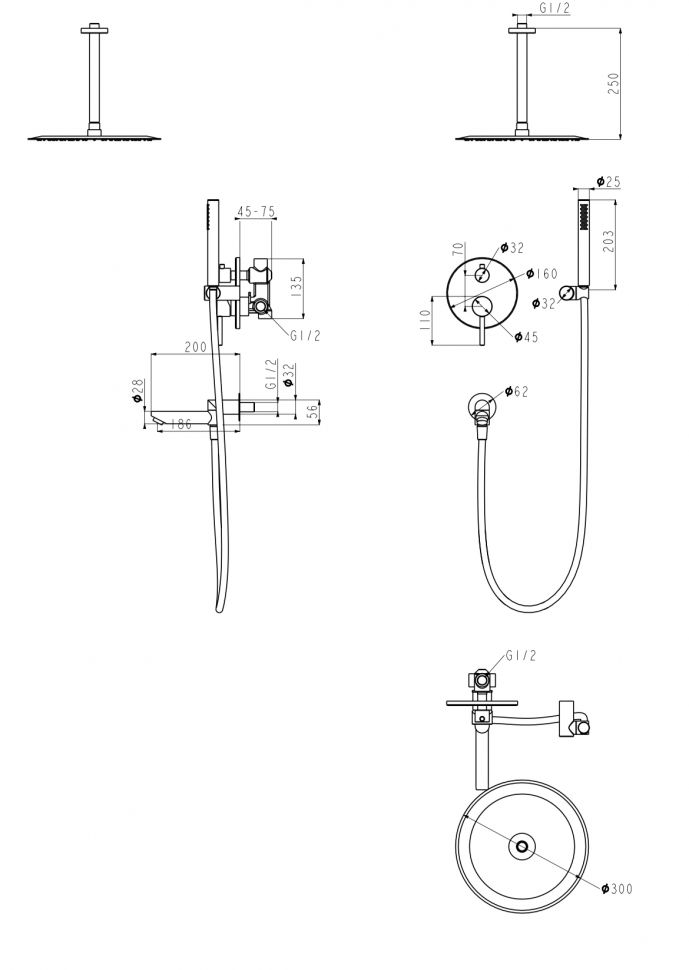 Душевая система скрытого монтажа Grocenberg GB5099BL-2 Чёрный матовый купить