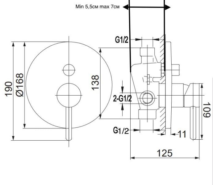 • Размер верхнего душа, см: