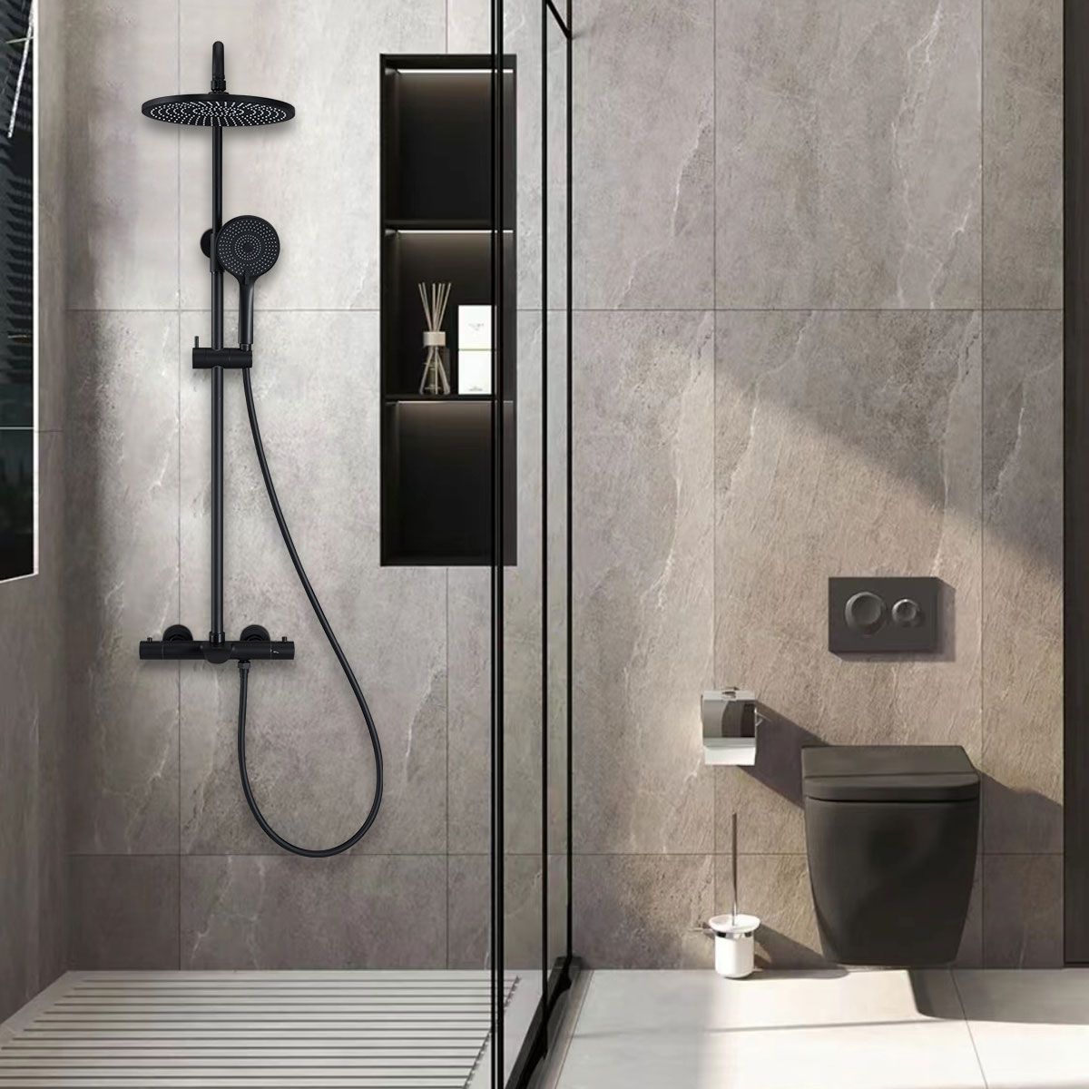 Душевая система Vincea Esse VSFS-1E1TMB термостатическая черный