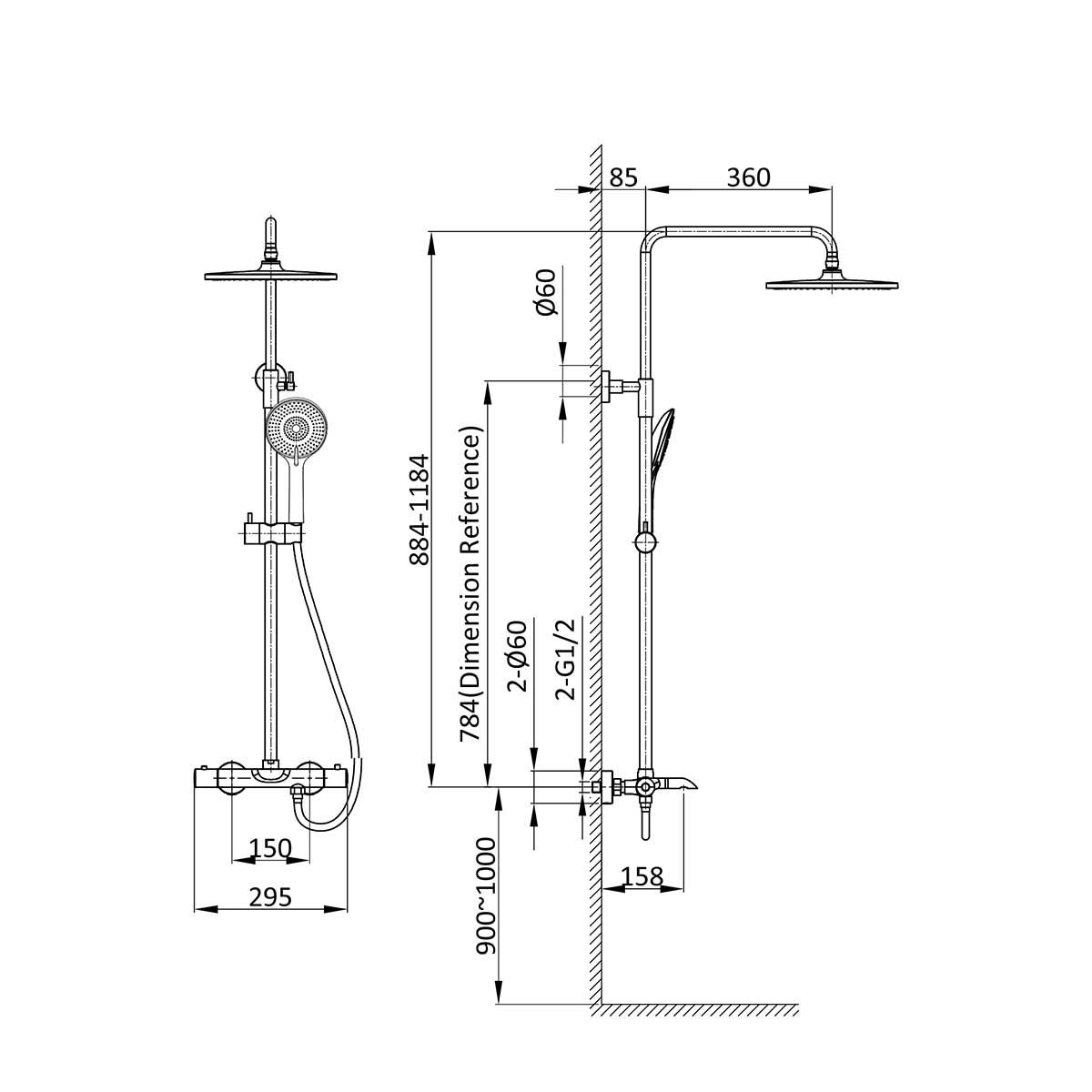 термостатФорма верхнего душа: