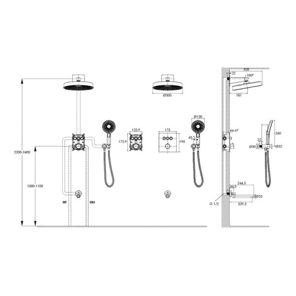 Душевая система встраиваемая с термостатом Bronze de Luxe OMG! 1011W, белый