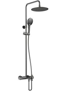состоит из: верхний душ, ручной душ, термостатический смеситель для ванны, штанга для душа, держатель для душа; верхний душ 250 1jet из нержавеющей стали; размер душевого диска: 250 мм, тип струи: Rain; душевая лейка 120 мм, 3 режима струи, переключение Select; шарнирное соединение: регулируемый угол верхнего душа; длина держателя для душа: 345,5 мм; держатель для ручного душа регулируемый по высоте; поворотный держатель для душа; вид монтажа: внешний монтаж; соединительная резьба G ½; межосевое подключение 150 мм ± 12 мм; телескопическая штанга; подъемная труба может быть укорочена по высоте 90-550 мм; термостатический картридж Vernet; дивертер Citec; шланг 1500 мм с защитой от перекручивания; 2 года гарантии.