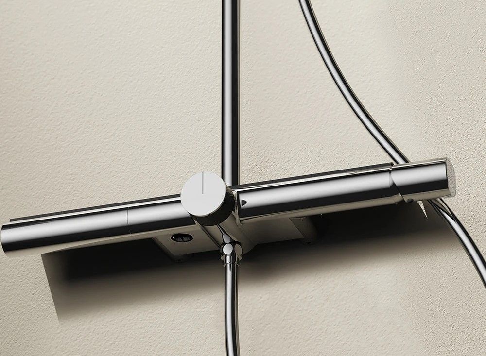 состоит из: верхний душ, ручной душ, смеситель для ванны, штанга для душа, держатель для душа; верхний душ 300 1jet; размер душевого диска: 300 мм, тип струи: Rain; душевая лейка 130 мм, 3 режима струи; съемный аэратор; шарнирное соединение: регулируемый угол верхнего душа;длина держателя для душа: 400 мм;держатель для ручного душа регулируемый по высоте; поворотный держатель для душа; вид монтажа: внешний монтаж; соединительная резьба G ½; межосевое подключение 150 мм ± 12 мм; телескопическая штанга; подъемная труба может быть укорочена по высоте 90-440 мм; полка из закаленного стекла; шланг 1500 мм; 2 года гарантии.