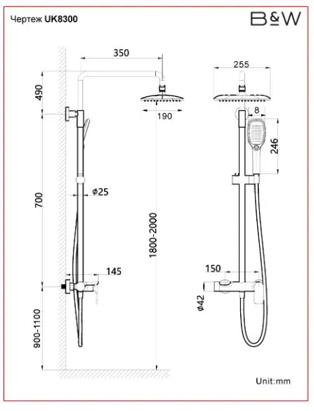 Душевая стойка Black&White Universe 8300ВUK чёрный матовый
