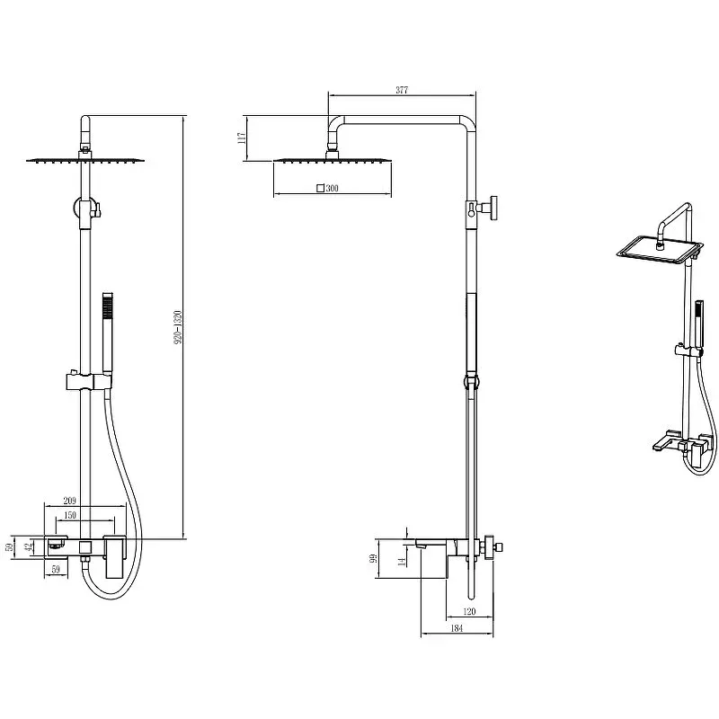 • Размер верхнего душа 300х300 мм.