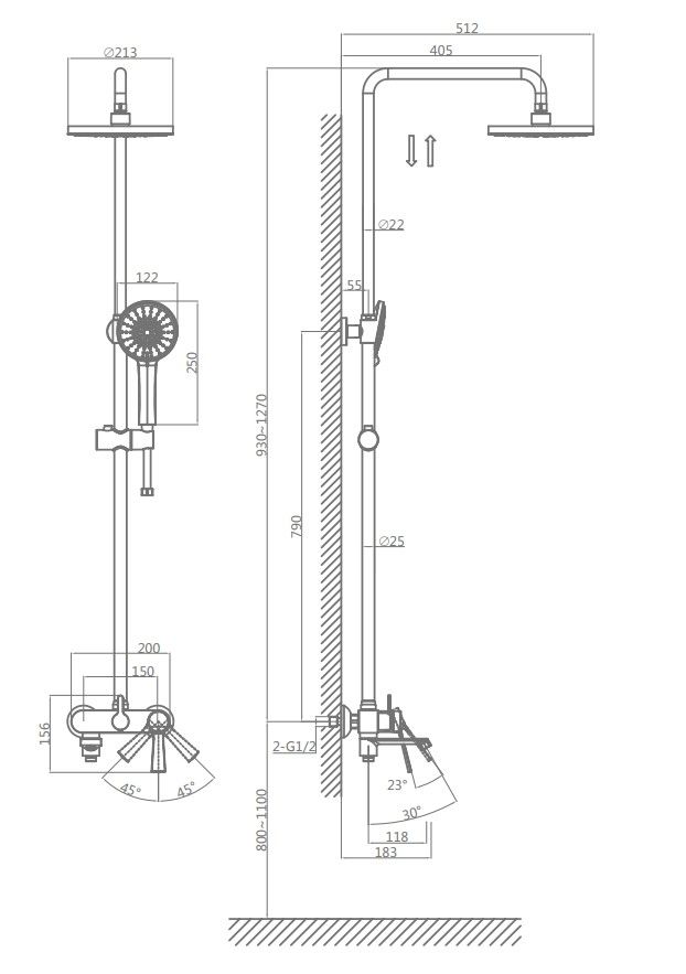 Душевая стойка DQ Bayern.Bamberg DA1553701B18 хром купить