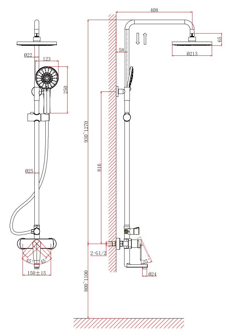 • Размер верхнего душа, см: