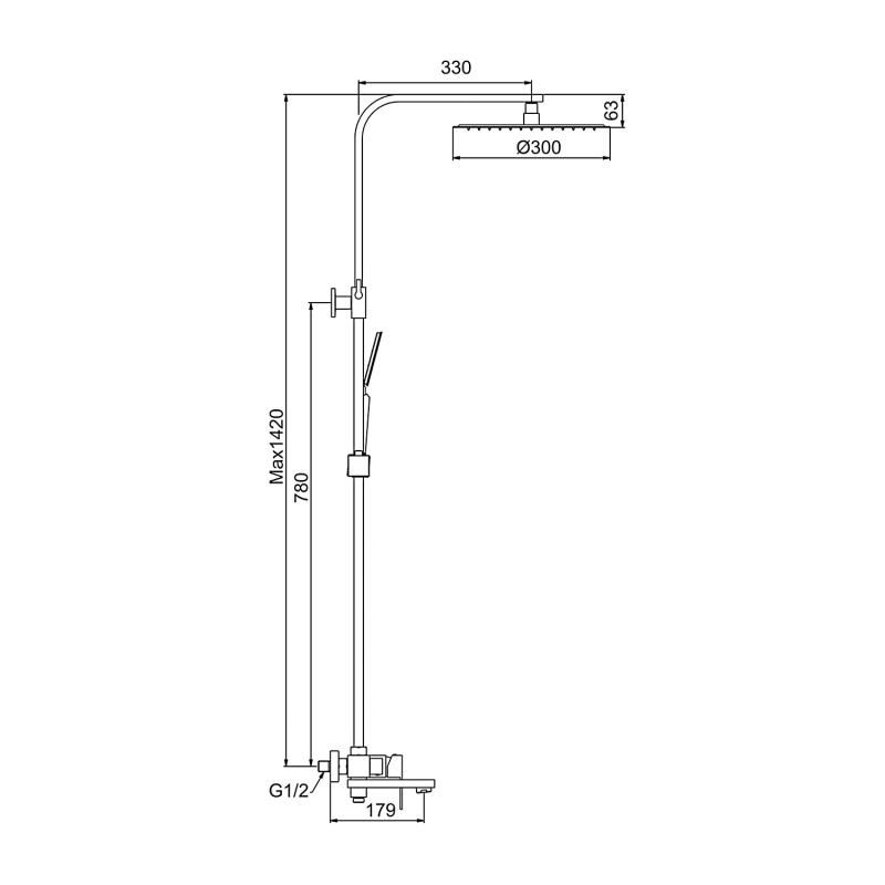 • Размер верхнего душа, см: