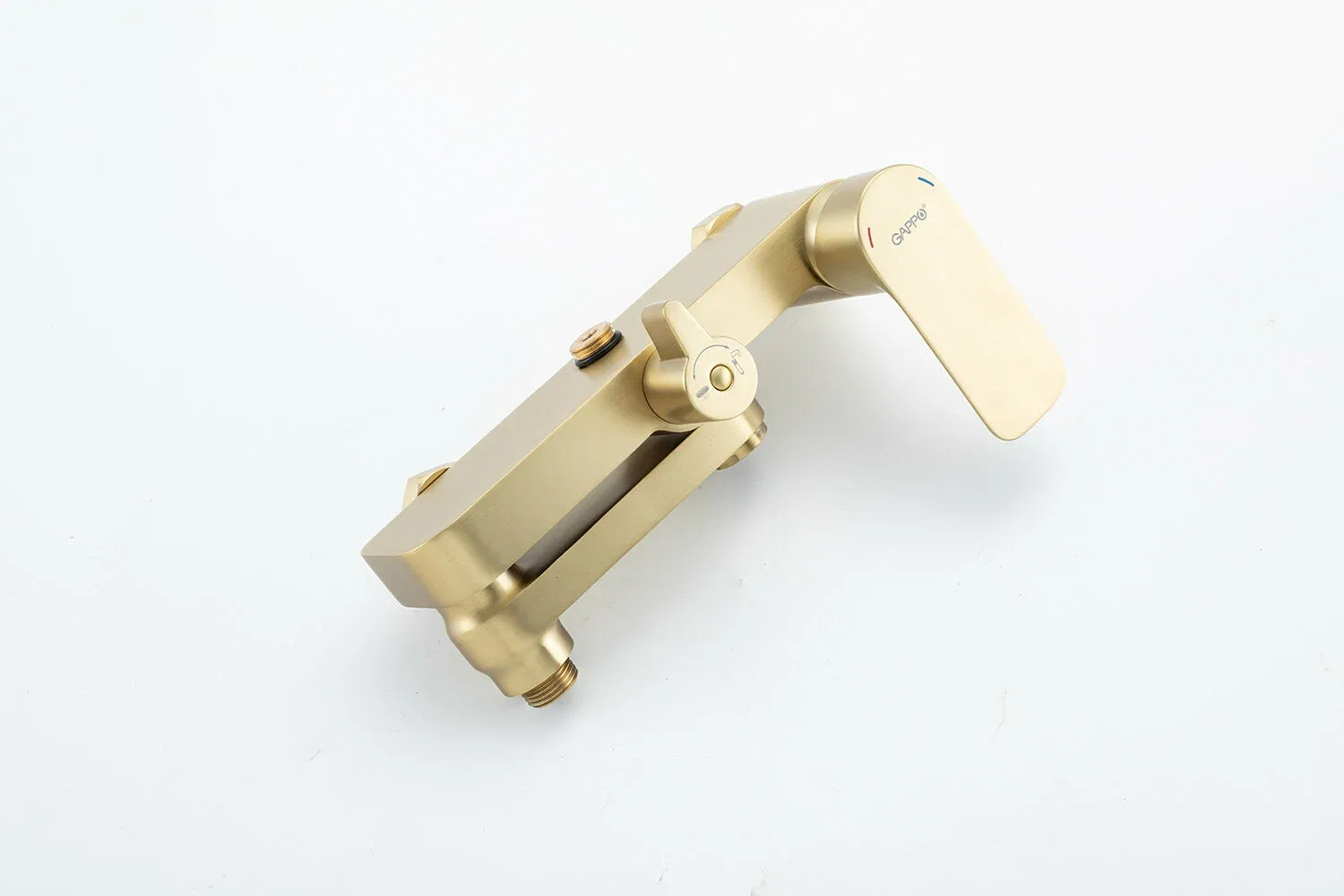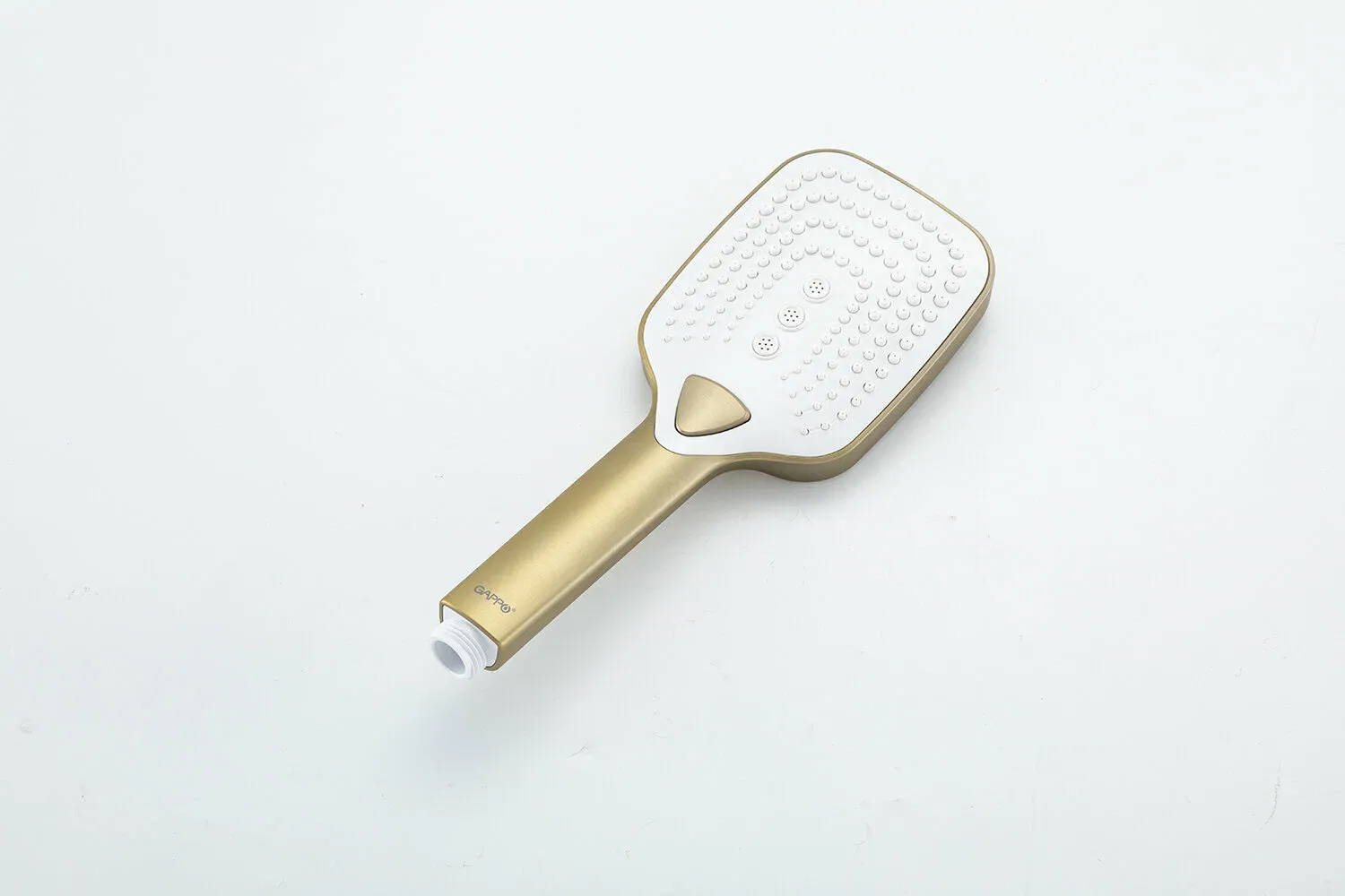 Современная душевая система серии G2448-3 GAPPO (гаппо) выполнена из латуни в цвете золотой сатин, имеет глянцевую поверхность. Комплектуется тропическим душем.
