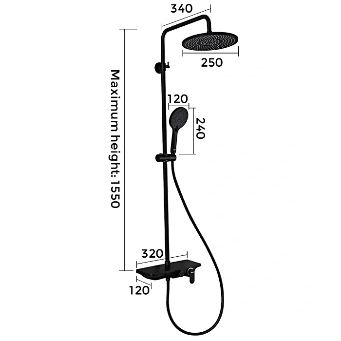 • высота душевой стойки: 1140-1600 мм