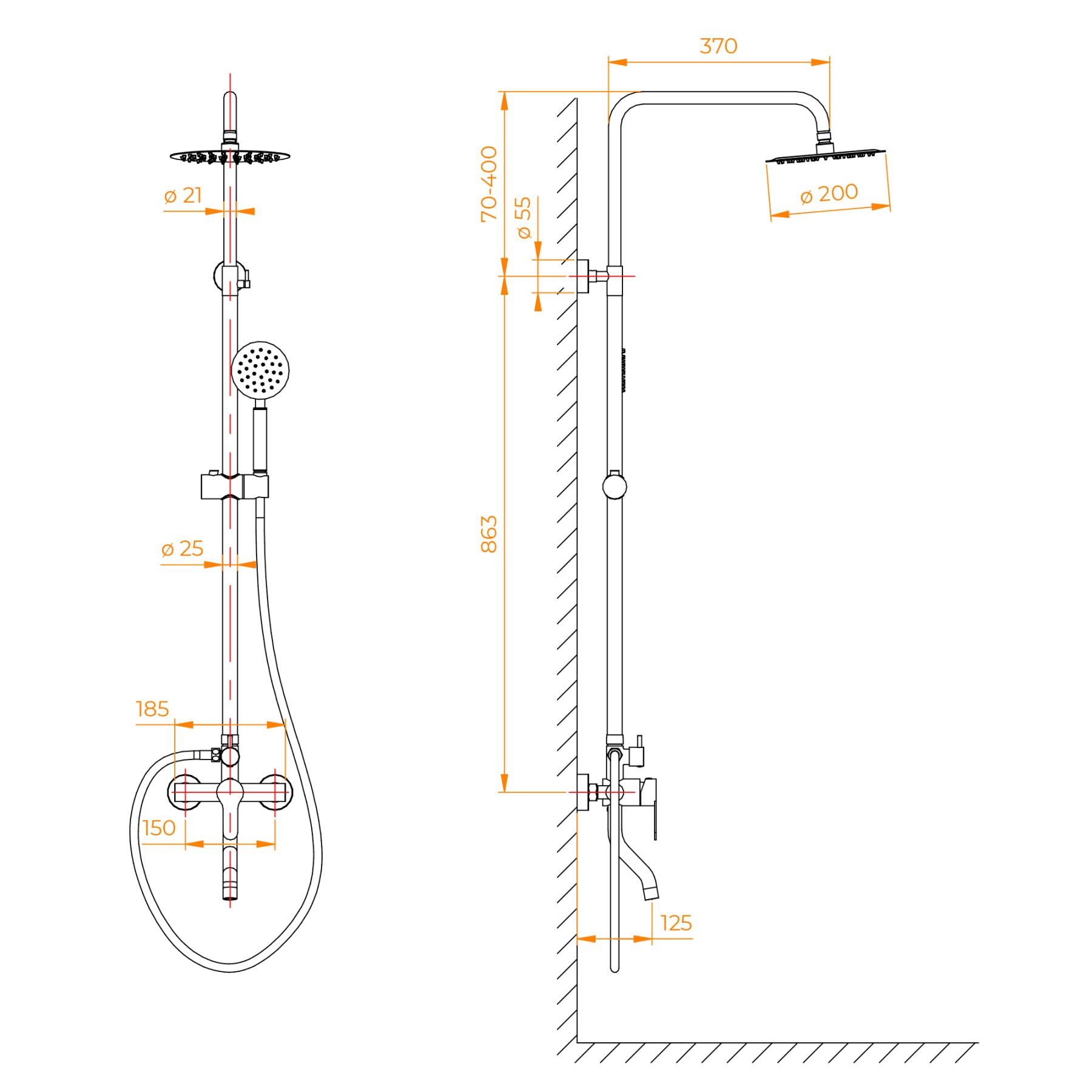 Душевая стойка RGW Shower Panels 59140124-13 - идеальное решение для вашей ванной комнаты. Изготовлена из высококачественных материалов: латунь и нержавеющая сталь, обеспечивая прочность и долговечность. Верхний душ имеет диаметр 20 см и круглую форму, обеспечивая комфортный и равномерный поток воды. Шланг изготовлен из стали и имеет длину 1.5 метра для удобства использования. Смеситель сделан из латуни, оснащен керамическим картриджем, обеспечивая долгий срок службы до 10 лет. Подключение осуществляется через резьбу 1/2 дюйма. Подходит для бытового использования. В комплекте также имеется ручной душ из нержавеющей стали AISI 304 с регулировкой высоты и держатель для него. Стальная штанга с регулировкой высоты верхнего душа и удлиненный излив обеспечивают дополнительный комфорт во время принятия душа.Дополнительные характеристики: