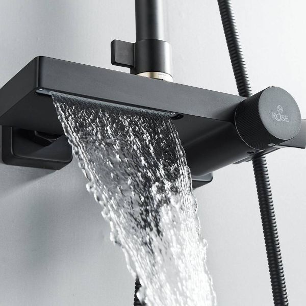 Душевая стойка Rose R1896H-6 с термостатом чёрный матовый купить