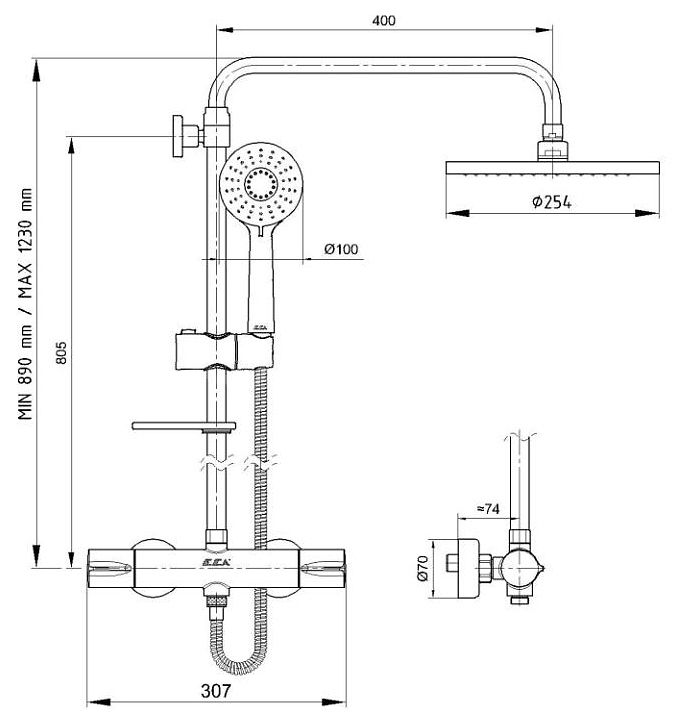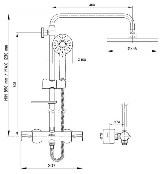 Душевая стойка с термостатом E.C.A. 102102489EX хром