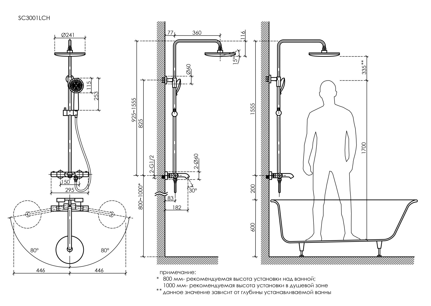 Душевая стойка  SANCOS GAME с изливом и термостатом для ванны/душа, с регулировкой по высоте,  цвет хром, арт. SC3001CH