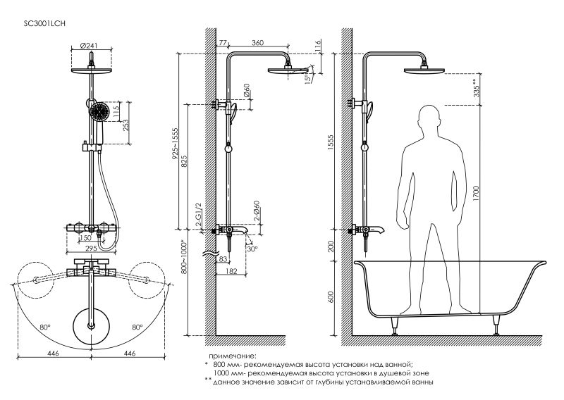 • Регулировка штанги по высоте от 925 - 1555 мм