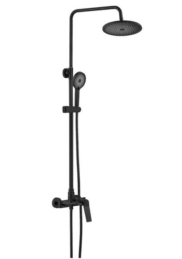 Душевая система Shevanik S8436H, черный.Количество режимов струи: 3.Размер верхнего душа: 25,5x25,5 см.Управление: рычажное.Излив для наполнения ванны: да.