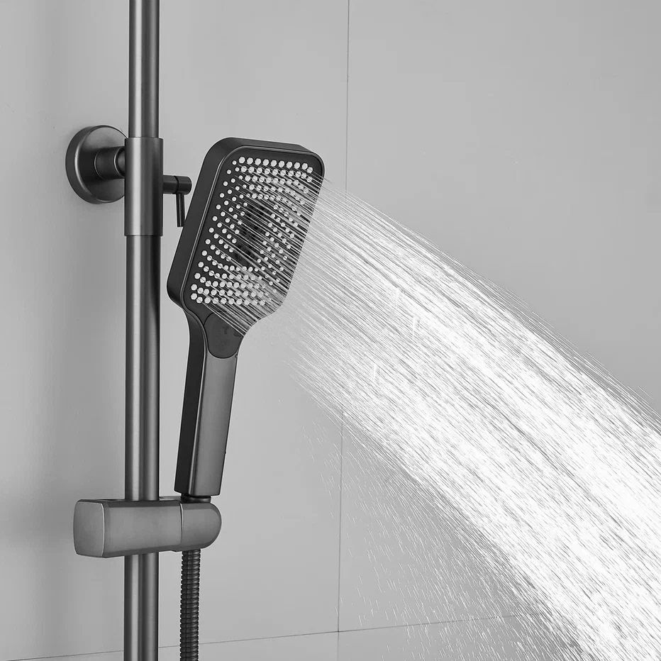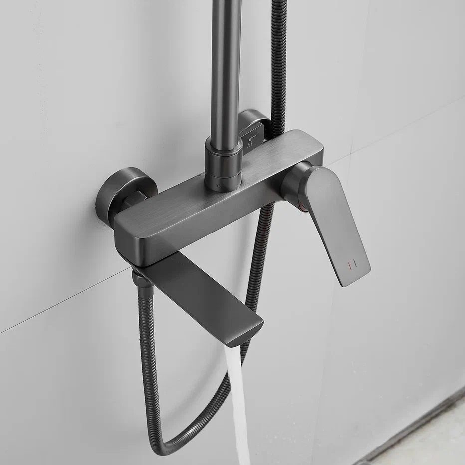 Душевая система Shevanik S9136T, оружейная сталь.Количество режимов струи: 3.Размер верхнего душа: 31x21,5 см.Управление: рычажное.Излив для наполнения ванны: да.